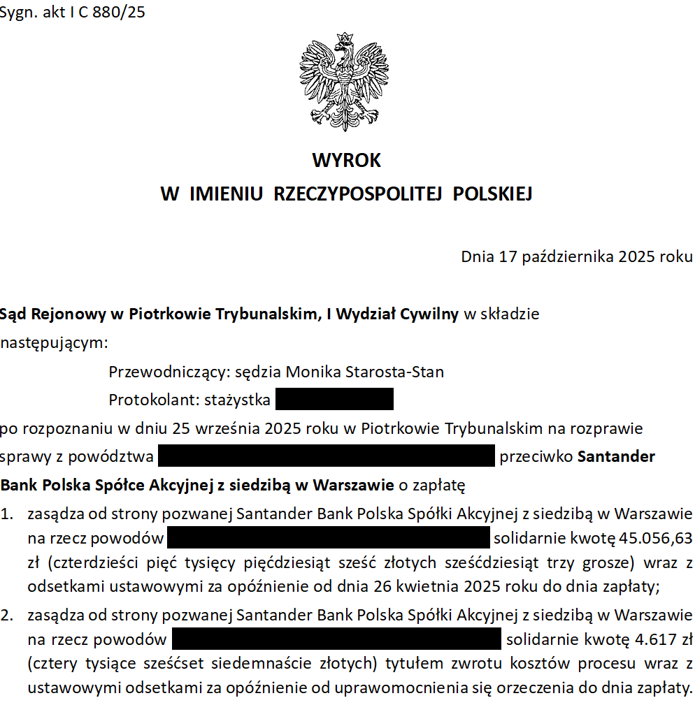 Rozstrzygnięcie: prawomocne zasądzenie dochodzonych kwot w oparciu o nieważność aneksu o przewalutowaniu kredytu